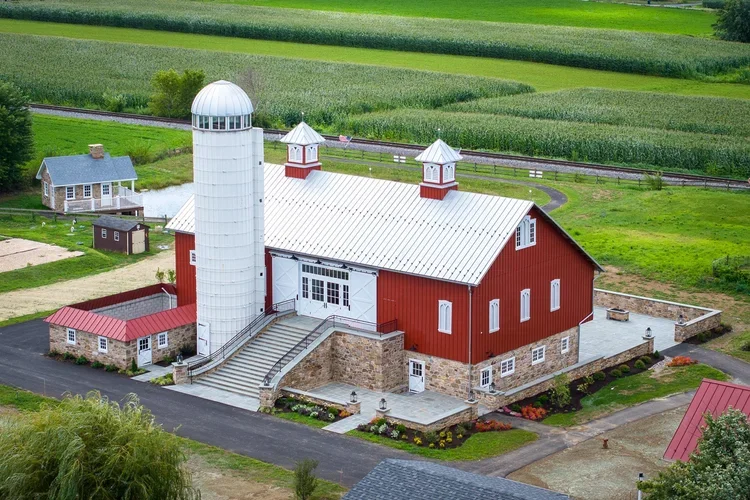 Experience the historic charm of our meticulously restored 19th-century bank barn. Nestled in the heart of Lancaster County, the venue features iconic views of lush Amish farmsteads and the passing vintage steam trains of the Strasburg Rail Road.